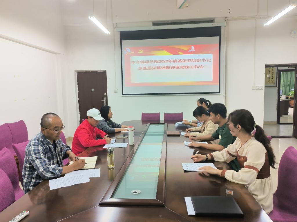 3月20日,体育健康学院在学院会议室召开2022年度党支部书记抓基层党建工作述职评议考核会,学院党委书记周必宁、党委副书记江俊、专职组织员龙有志、教工党支部书记王晓晨、学生第一党支部书记伍灿明、学生第二党支部书记钟超攀、学生第三党支部书记凌金欢和学生第四党支部王燕等参加了会议。会议由周必宁主持。