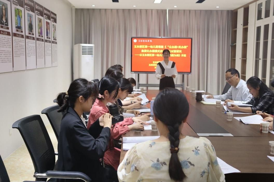 3月21日下午,教育科学学院与玉东新区第一幼儿园于我校东校区明德楼408会议室举行联合教研活动,玉东新区第一幼儿园副园长李振华、课题组成员,学院副院长谢清理,教师代表参加此次研讨会。