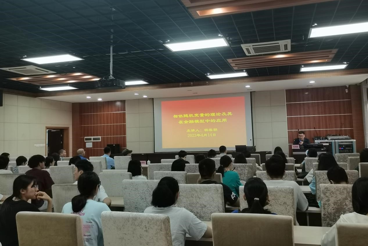 讲座上,杨善朝以“相依随机变量的理论及其在金融模型中的应用”为主题,围绕相依随机变量的定义、金融模型的相依性、相依随机变量的不等式研究成果等方面内容进行介绍,让师生们对相依随机变量相关理论有了深入的了解。师生通过互动,进一步强化交流与探讨,深化知识理解和吸收。