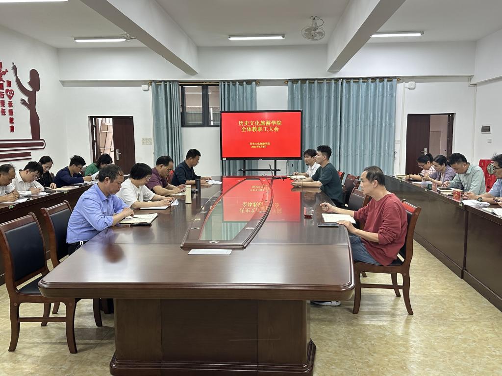 近日,历史文化旅游学院于我校东校区至善楼509会议室召开全体教职工大会。该院领导班子及全体教职工参加本次会议,会议由曾凡贞主持。