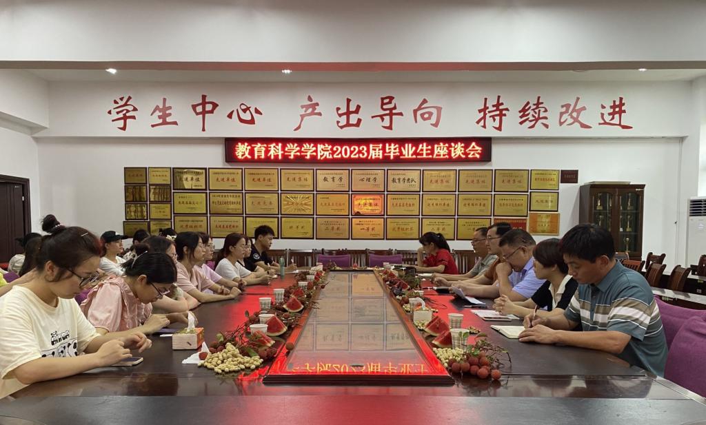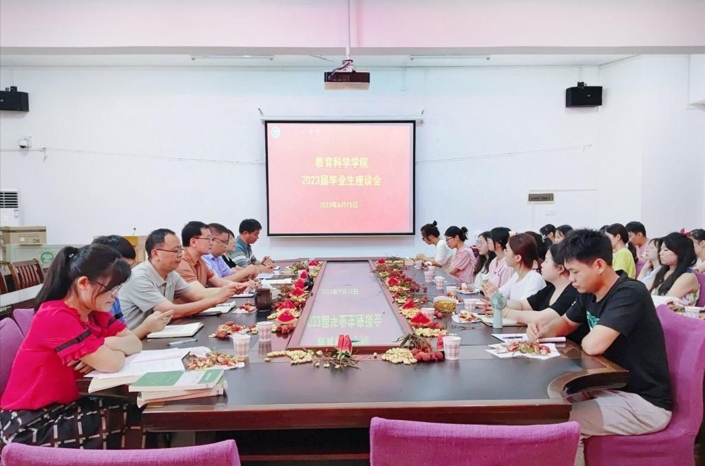 6月15日下午,教育科学学院在我校东校区明德楼学院会议室召开2023届毕业生座谈会。此次座谈会旨在为即将毕业的同学提供交流平台,共同回顾大学四年学习收获,同时为学院教育教学管理服务等方面提供宝贵建议。学院领导班子、小学教育系主任、就业辅导员以及2023届毕业生代表参加此次座谈会,座谈会由学院党委副书记李尚芳主持。