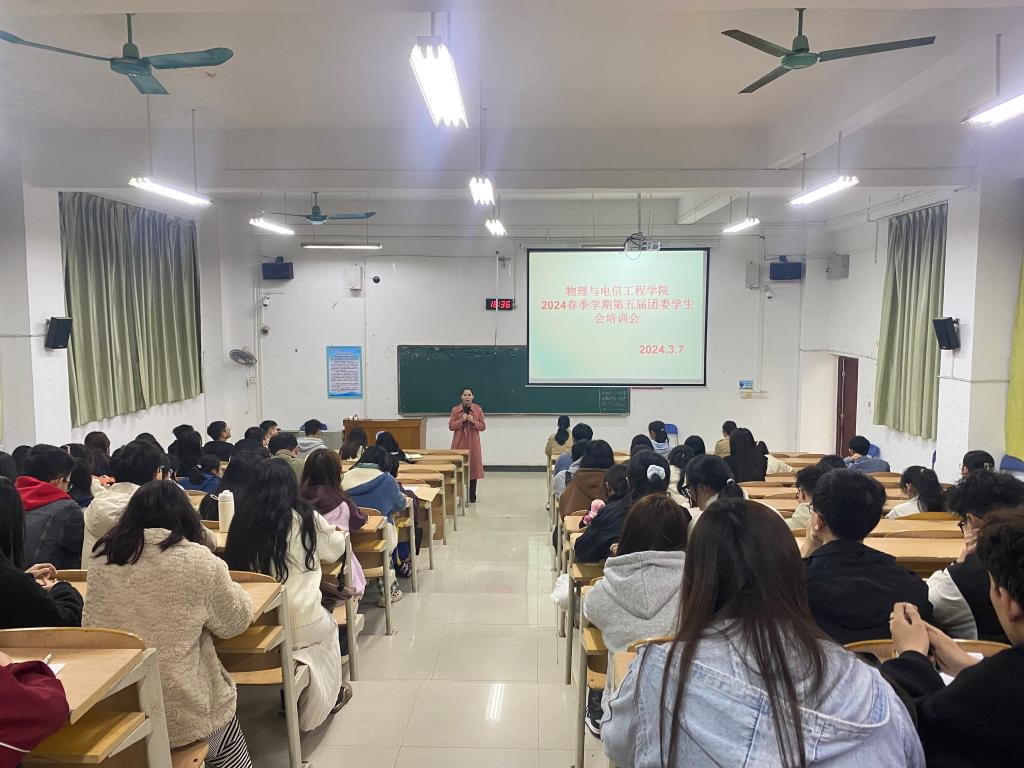 为更高效地开展新学期团委学生会工作,明确新学期工作目标,鼓舞学生干部士气,3月6日、7日,物理与电信工程学院先后召开新学期团委学生会工作布置会、团委学生会培训会。该院党委副书记兼副院长覃艳超,全体辅导员及团委学生会成员参加会议。