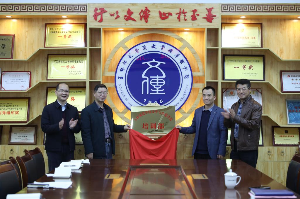 3月14日下午,文学与传媒学院培训部在东校区至善楼309会议室正式揭牌。完美在线登录官网党委常委、宣传部部长徐一周出席揭牌仪式,继续教育学院、文学与传媒学院领导班子以及培训部成员、全体辅导员参与揭牌仪式。