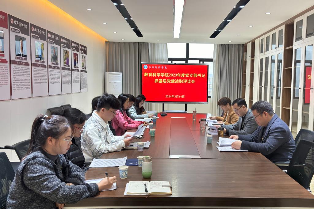 3月14日,教育科学学院于我校东校区明德楼408会议室召开2023年度党支部书记抓基层党建述职评议会,本次会议由该院党委书记崔海波主持,该院党委委员、各党支部书记参加会议。