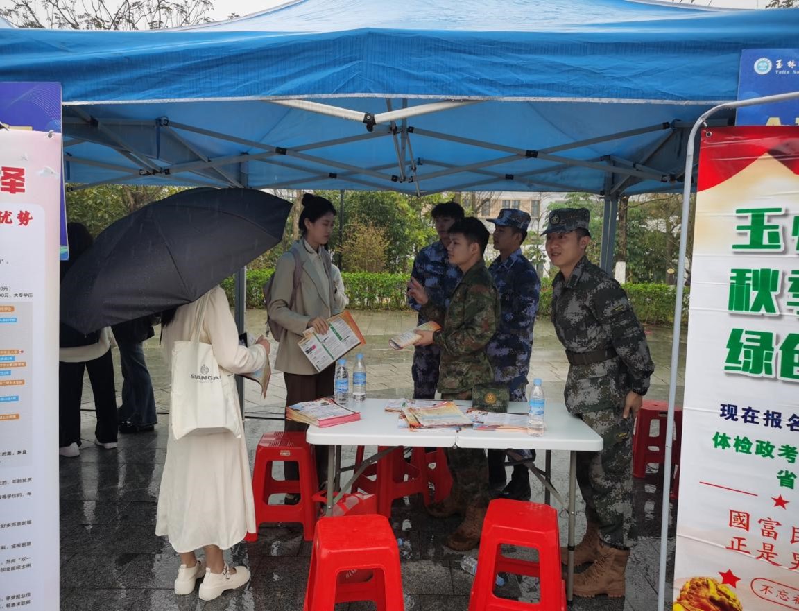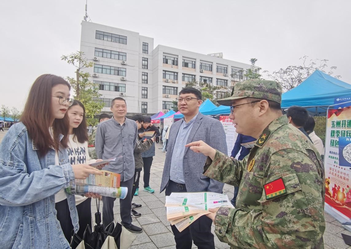 近日来,完美在线登录官网党委武装部抢抓春招关键期,结合就业双选会良机,加强大学毕业生参军入伍的宣传发动工作。他们特别邀请玉州区人民武装部征兵工作人员和校纠察队队员前来共