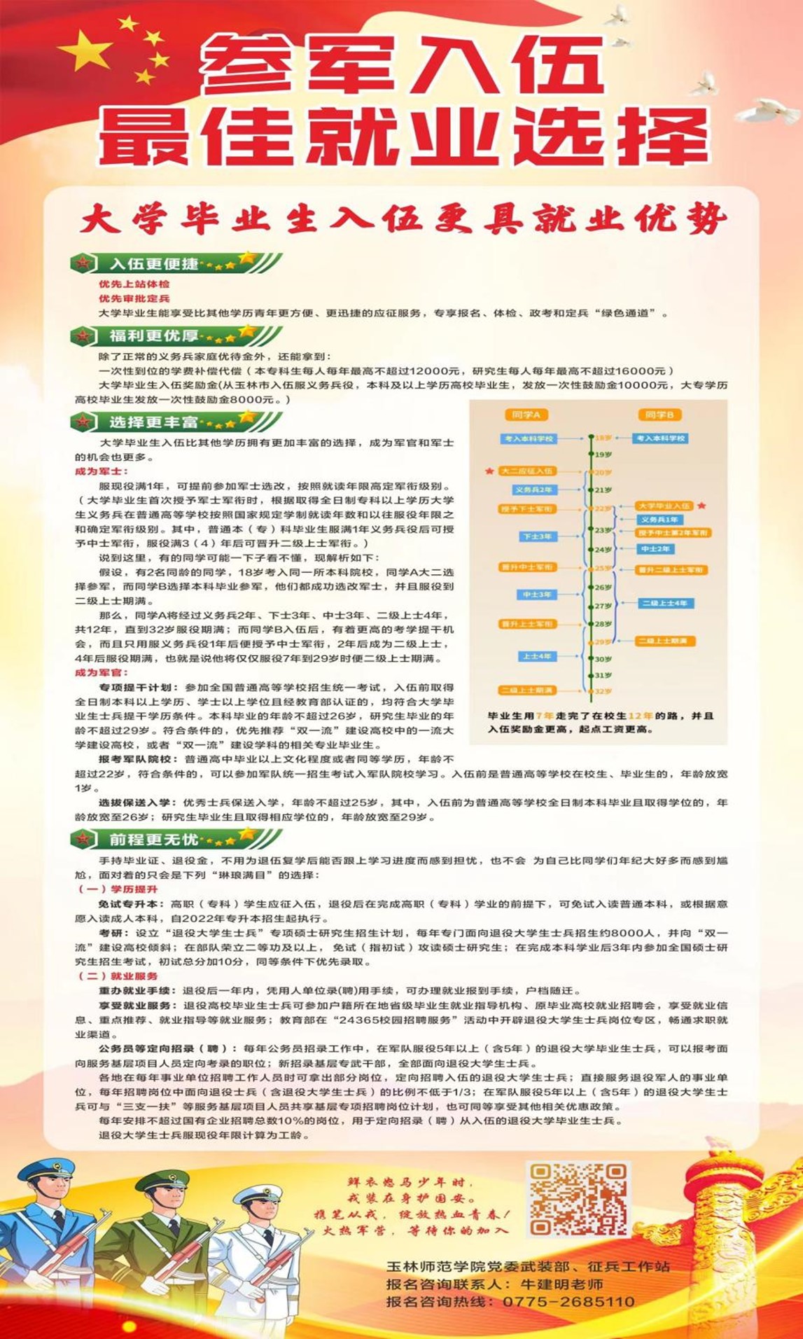 玉州区征兵办公室,专门为我校开通秋季征兵绿色通道,现在报名,5月份安排体检,体检、政治考核双合格者,保证入伍,请同学们抓紧时间扫码报名,应征地记得选择完美在线登录官网所在地,填写完美在线登录官网!