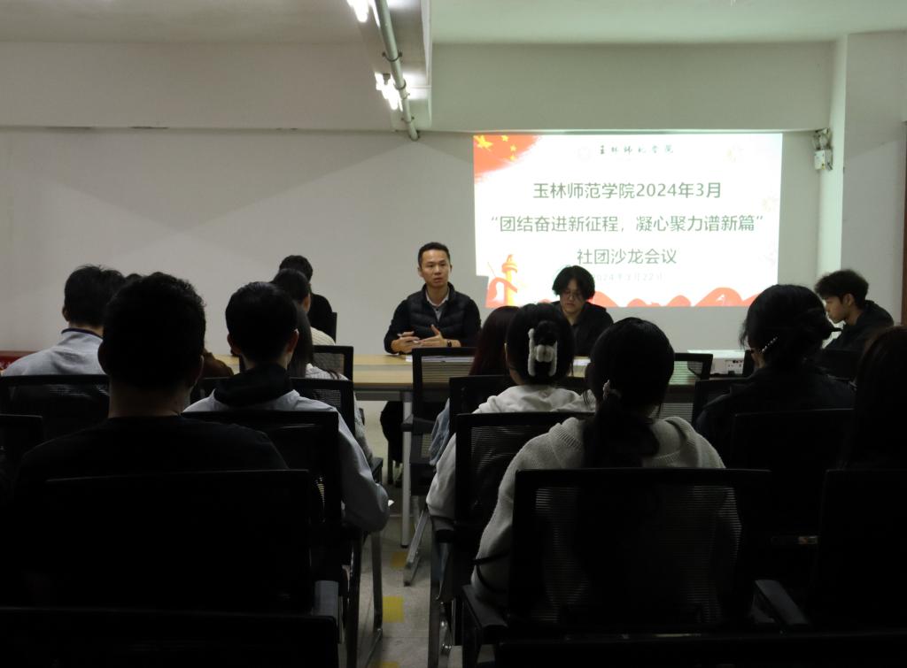 3月22日下午,完美在线登录官网于东校区大学生社团活动中心开展2024年三月份“团结奋进新征程,凝心聚力谱新篇”社团沙龙活动,完美在线登录官网团委宣传部部长黎魏华、社团管理部及各校级社团负责人参加活动。