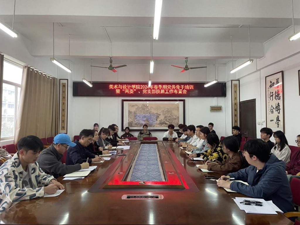 3月22日下午,美术与设计学院于我校东校区博学楼3-407会议室召开2024年春季期党务骨干培训暨“两委”、党支部换届工作布置会。该院党委书记黄培英、党委副书记周美艳、各支部书记、支委以及党建工作委员会成员参与会议,会议由黄培英主持。