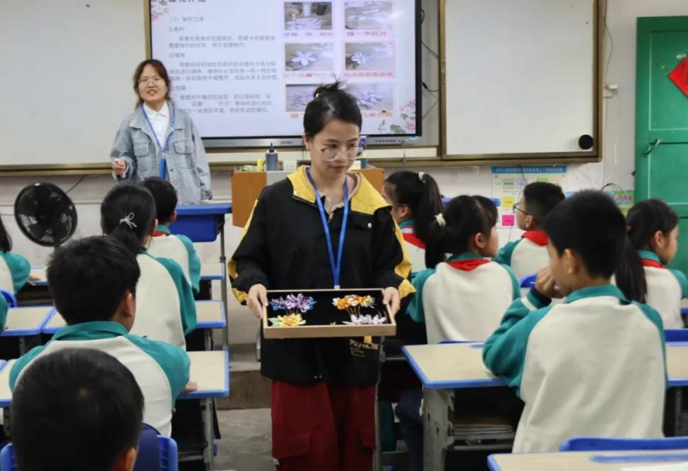 3月19日,志愿者来到玉林市玉东新区茂林镇大芦小学进行教育关爱特色活动之非遗缠花教学