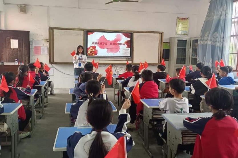 3月20日,志愿者来到玉林市玉州区城西新定小学进行教育关爱特色活动之爱国主义教育