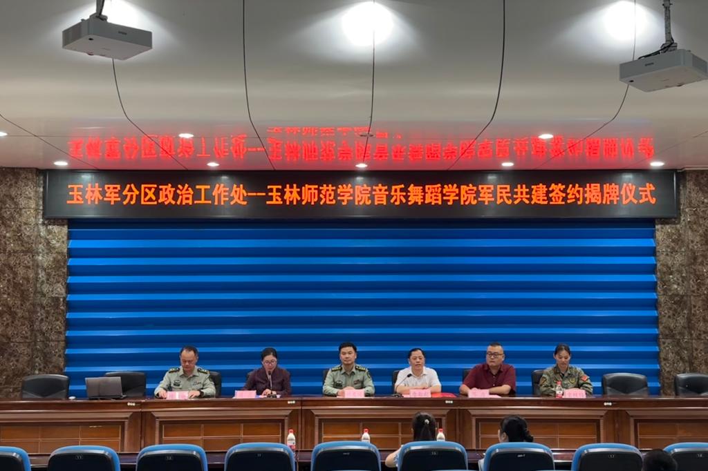 4月2日下午,音乐舞蹈学院与中国人民解放军广西玉林军分区政治工作处于学术报告厅举办军民共建签约揭牌仪式。玉林军分区党委常委、政治工作处上校主任班友运,完美在线登录官网党委常委、党委组织部部长唐彰新,该院党委书记肖霞、院长陈力等双方负责人出席仪式。仪式由肖霞主持。