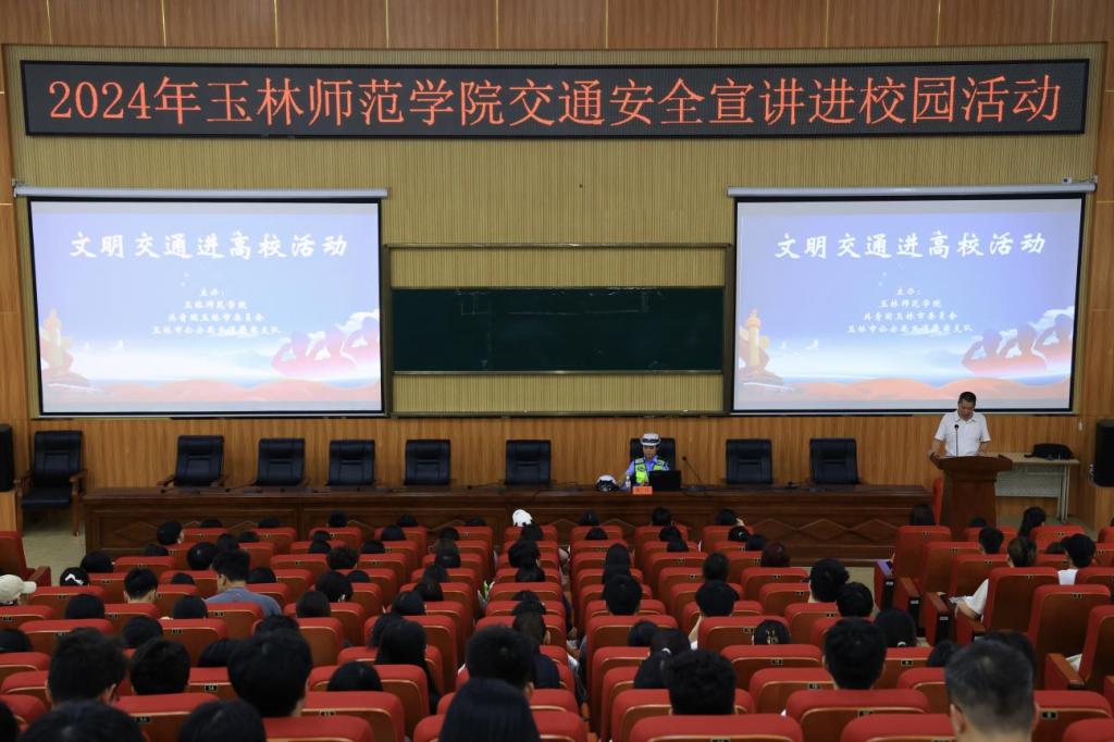 4月2日下午,学生工作部(处)、保卫处联合玉林市公安局交警支队于我校东校区明德楼113教室开展交通安全宣讲进校园活动。学生工作处副处长文丽、保卫处副处长甘露、玉林市公安局交警支队交警及各学院学生代表参加活动。