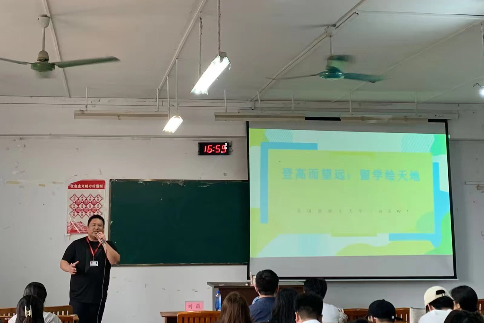 2日下午,杨天圣于厚德1301教室为2021级、2022级同学上题为“登高而望远 留学绘天地”的就业指导课程,重点讲解留学准备材料、留学注意事项、留学生就业规划等方面内容。杨天圣指出,海外留学可以开阔眼界和提升能力,有留学意向的同学要提前准备,做好规划。