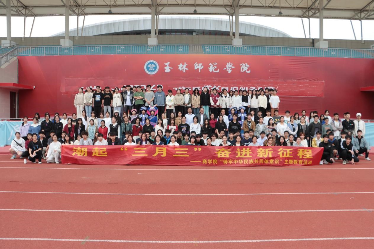 春花烂漫正当时,又迎广西“三月三”。为进一步深入贯彻落实习近平总书记关于加强和改进民族工作的重要思想和对广西重大方略要求,广泛促进各民族师生交往交流交融,营造铸牢中华民族共同体意识的浓厚氛围,4月9日,商学院于我校东校区新田径场开展“潮起‘三月三’奋进新征程”“铸牢中华民族共同体意识”主题教育活动,该院党委书记管金标,副院长黎春梅、赵文,党委专职组织员滕广伟和专职辅导员参加本次活动,学生党员、团员和壮、瑶、苗等各少数民族代表参加活动。