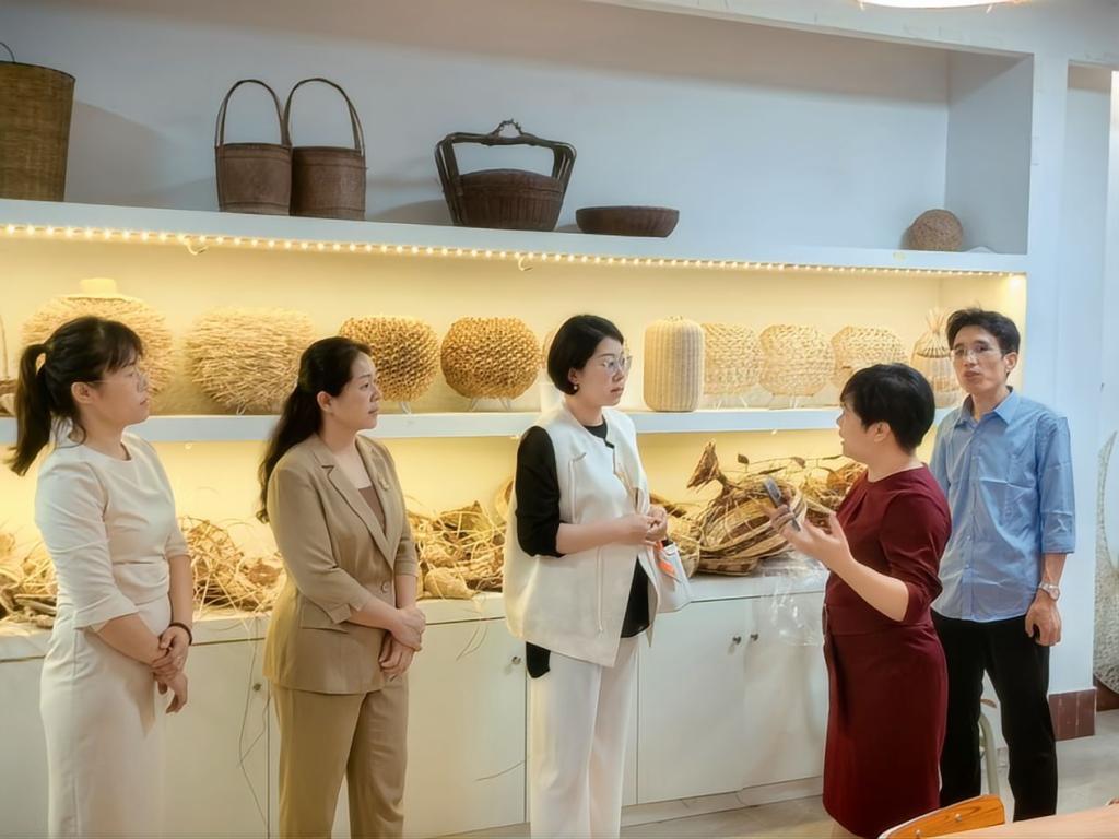 会后,与会人员一同参观该院“守艺·十二工坊”。贺洁对该院工坊的建设及学生的创作水平表示赞赏。
