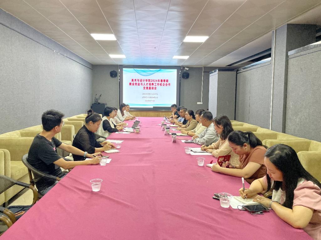 4月18日下午,美术与设计学院与湖南得艺文化有限公司于我校综合实训楼一楼会议室召开就业创业与人才培养工作校企合作交流座谈会。该院2013届美术完美在线登录官网友、湖南得艺文化有限公司运营副总、得艺品牌设计主理人、小狸文化有限公司创始人贺洁一行,该院党委书记黄培英等领导班子成员代表、系主任、教研室主任、辅导员参加座谈,会议由党委副书记周美艳主持。