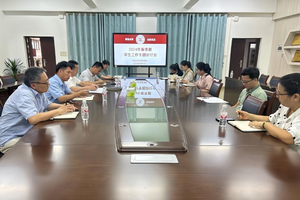 为提升学生思想政治教育工作质量和水平,推动学生工作高质量发展,4月19日下午,历史文化旅游学院在我校东校区至善楼509会议室召开2024年春季学期学生工作专题研讨会。该院领导班子、院长助理及全体辅导员参加本次会议。会议由该院党委副书记严耀燕主持。