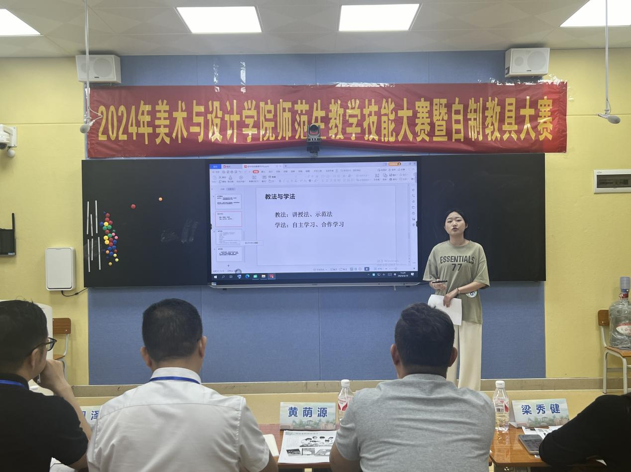 为加强师范生教学技能训练,提高师范生人才培养质量,增强师范生的创新能力及就业竞争力。4月19日下午,美术与设计学院于我校综合实训中心403教室和博学楼1-505教室开展2024年师范生教学技能大赛暨自制教具大赛。该院副院长刘斌慧、玉林实验中学副校长黄荫源、玉高附中、玉州区城西二中教师代表以及该院领导老师担任评委,该院15名美术学专业学生参加比赛。
