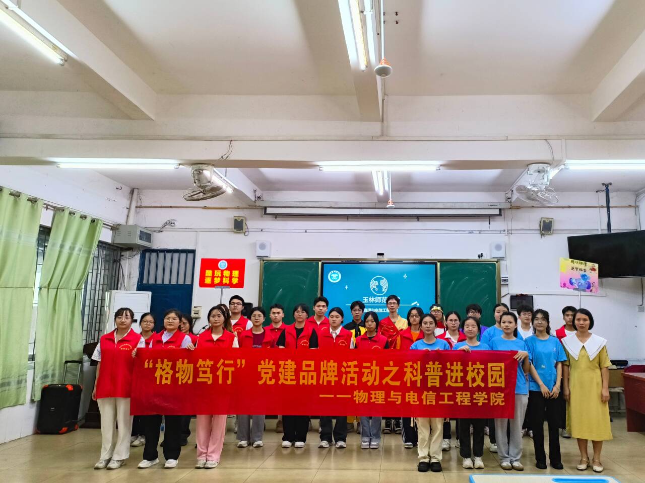 为充分发挥基层党组织战斗堡垒和党员先锋模范作用,提升党员服务群众工作水平,4月19日,物理与电信工程学院党委委员代表巫钊院长、张文杰副院长带队走进玉林市苗园中学开展“格物笃行”党建品牌活动之科普进校园系列志愿服务活动。该院学生党支部书记覃敏玲、学生党员志愿者、苗园中学物理组教师及全体八年级学生参加此次活动。