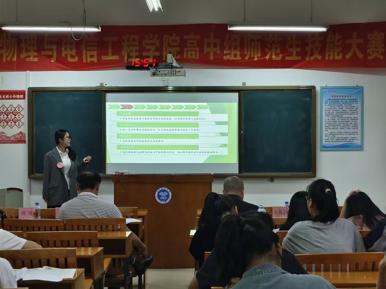 为全面实施素质教育,加强师范生教学技能培养与训练,并更好地向校赛、省赛输送优秀选手,4月21日下午,物理与电信工程学院在我校东校区文科楼303、304、307、308教室成功举办2024年师范生教学技能大赛决赛。该院院长巫钊、副院长罗志荣、张文杰出席比赛。
