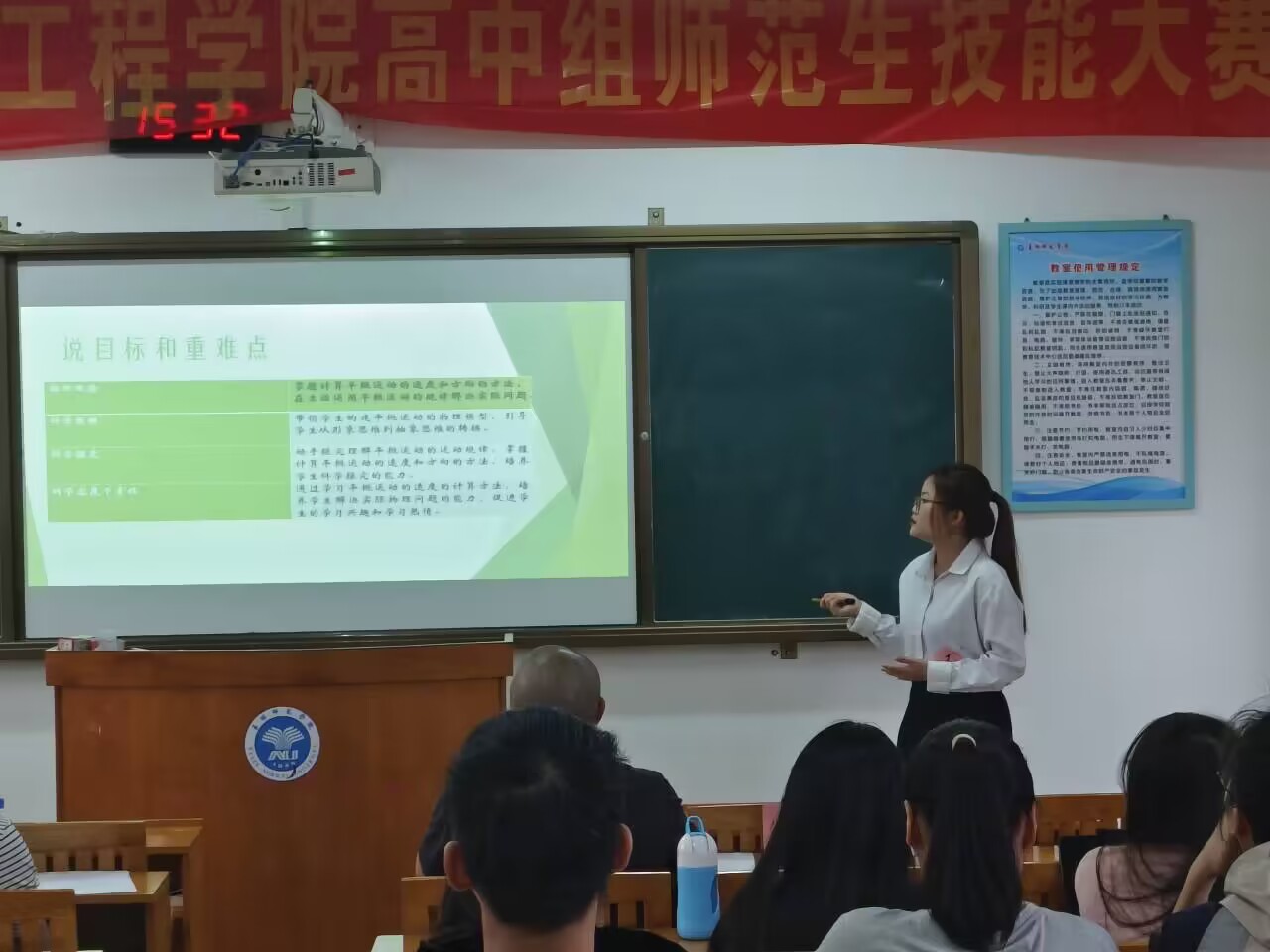 比赛过程中,选手们尽展教师风采,语言规范、表情自然、教态得体,将现代教育技术手段与传统教学方式有效结合,将教学内容与生活实际巧妙链接,营造轻松愉悦的课堂氛围,呈现独特的教学风格,多方位展现扎实、过硬的师范生技能素质。