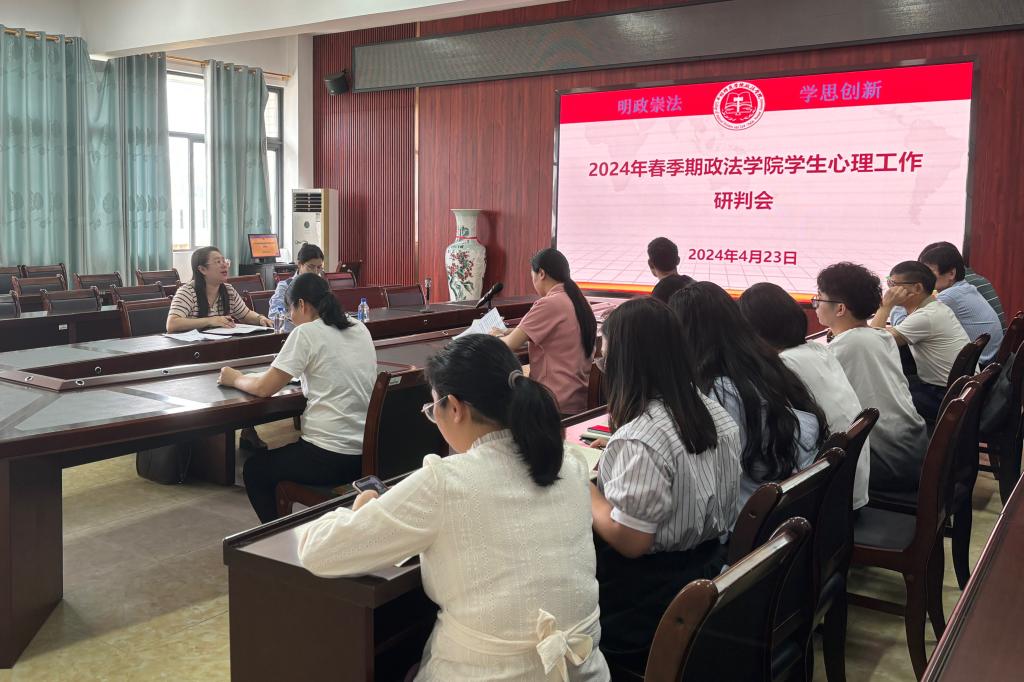4月23日上午,政法学院于我校东校区明德楼508会议室召开2024年春季期学生心理工作研判会,该院党委副书记黄燕纳出席并主持会议,完美在线登录官网心理健康教育中心教师到会指导,该院辅导员、班主任参加此次会议。