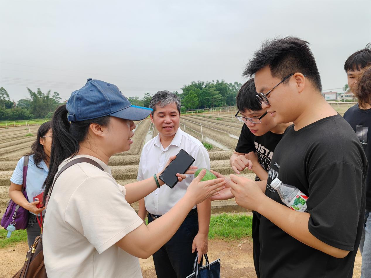 在保成粮油有限公司总经理庞广保等负责人的介绍中,梁修杰一行参观该公司的现代化示范区种植基地。途中,庞广保和技术员们耐心讲解叶菜和瓜类种植基地的先进种植技术,展示公司在农业领域的创新管理实力,让师生们深刻感受到现代农业的魅力和前景。