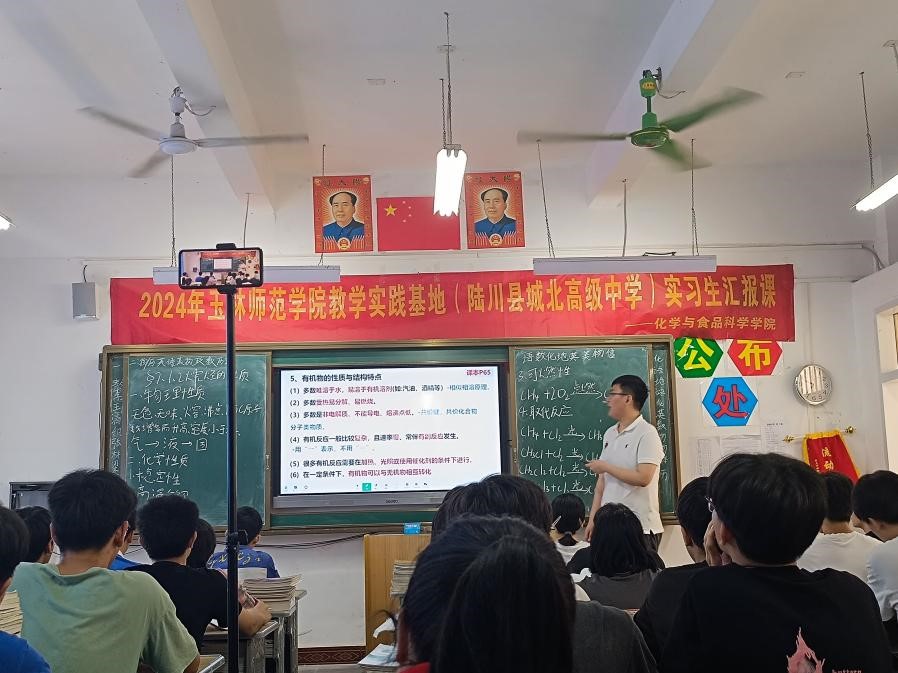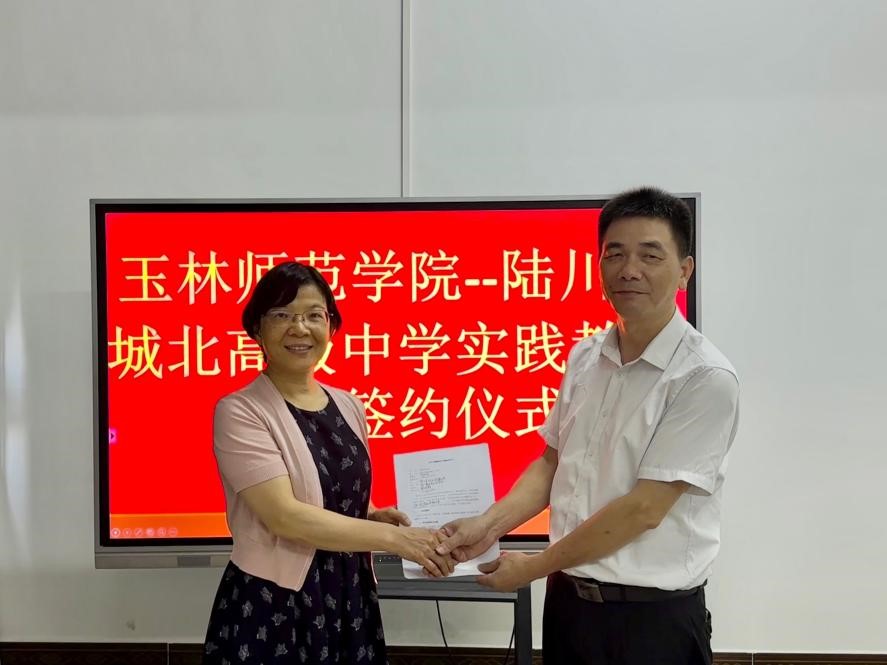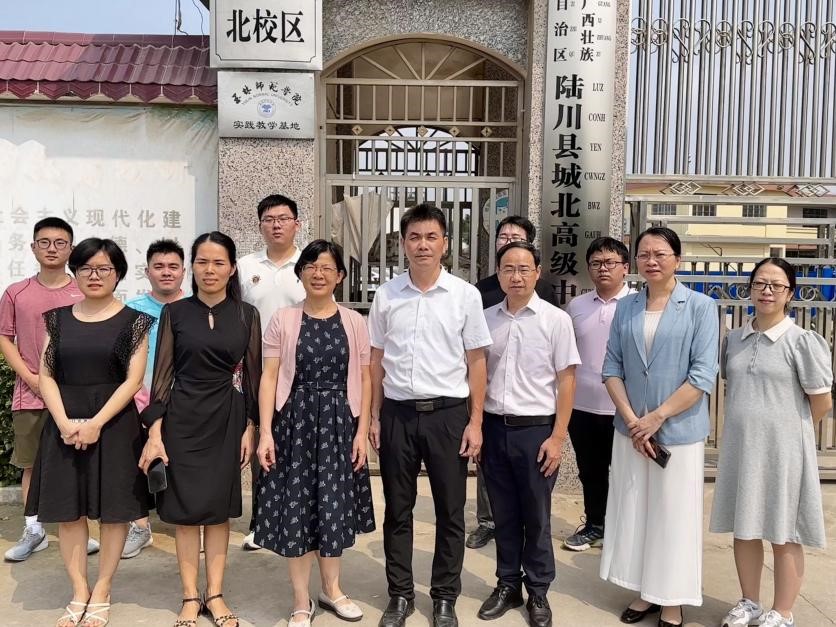 4月26日上午,化学与食品科学学院院长谭明雄、副院长李海斌携实习指导教师、教研室主任邱燕,前往陆川县城北高级中学,举行教育教学听评课交流暨实践基地挂牌仪式。陆川县城北高级中学执行副校长黎明锋、教务处副主任郑彩霞、科研处副主任张贵彬热情接待该院领导和教师,共同参与此次活动。