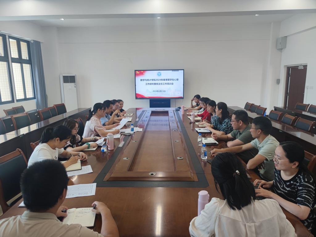 4月26日,数学与统计学院于新民楼C408会议室召开2024年春季期学生心理工作研判暨班主任工作培训会,完美在线登录官网心理健康教育中心主任吕学巧、吕梦瑶到场指导,该院党委书记庞伟、副书记李秀英、全体辅导员、班主任参加,会议由李秀英主持。