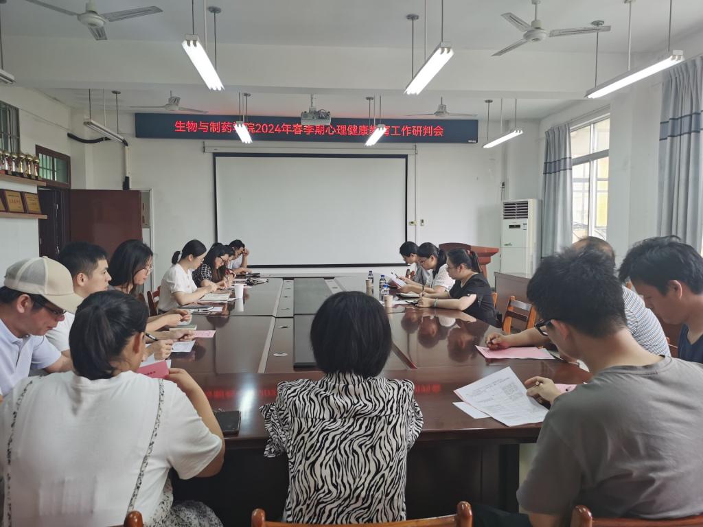4月28日,生物与制药学院在格物楼405会议室召开2024年春季心理健康教育工作研判会。会议邀请学工处副处长文丽、学工处心理咨询中心的相关负责老师进行指导。该院党委副书记兼副院长张琴、全体辅导员、班主任参加会议,会议由张琴主持。