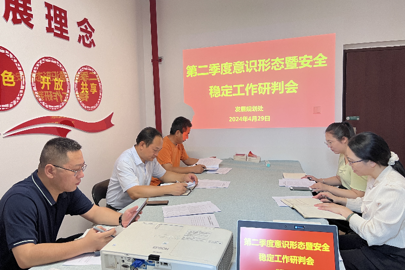 4月29日,发展规划处在我校东校区新民楼A301会议室召开2024年第二季度意识形态暨安全稳定工作研判会。该处处长卢海啸以及全体工作人员参加会议。会议由卢海啸主持。