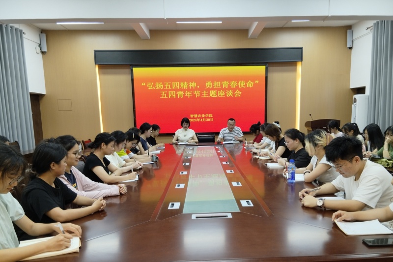 4月30日,智慧农业学院于原行政楼304会议室召开“弘扬五四精神,勇担青春使命”五四青年节主题座谈会。该院党委副书记兼副院长谭志坚、团委书记郑薇薇、青年学生代表参会。
