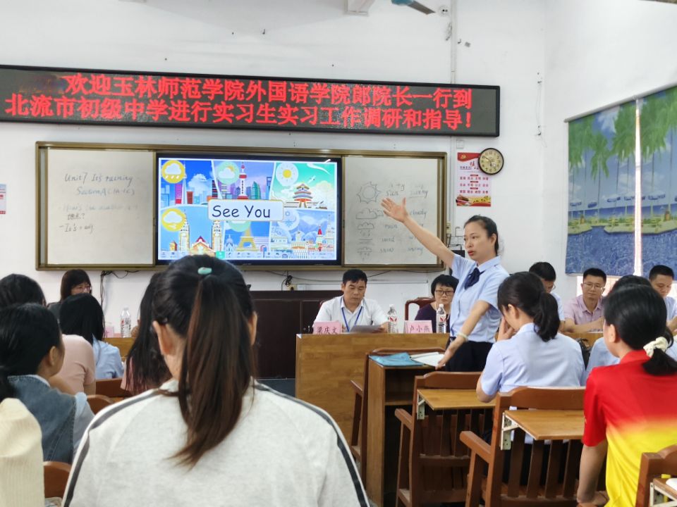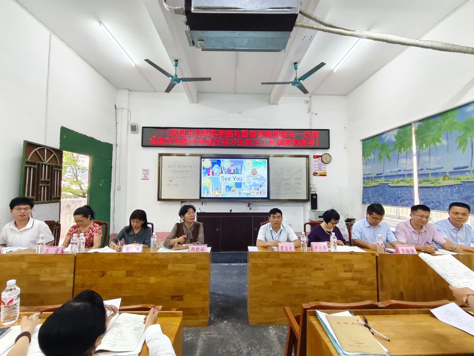 为了检验和提高师范生的教学水平,夯实教育教学技能,5月10日,外国语学院院长郎晓娟以及教师代表赴北流市初级中学开展实习调研活动。