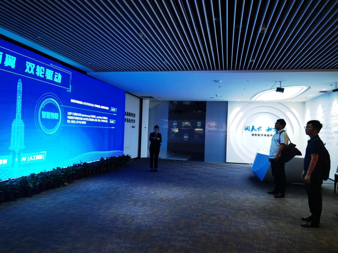 方琨一行参观润和软件的技术产品展馆,并听取工作人员的讲解。