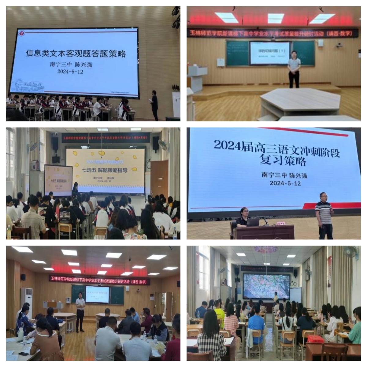 会后,由南宁市三中语文、数学和英语三门学科的老师分别给靖西市相关高校老师展示了各学科的示范课程、学科专题讲座和学科质量提升座谈与研讨活动。