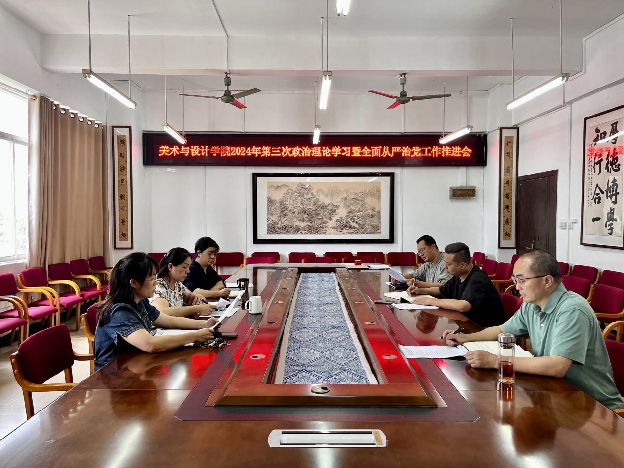 5月13日下午,美术与设计学院于我校东校区博学楼3-407会议室召开2024年第三次政治理论学习暨全面从严治党工作推进会,该院领导班子成员参加会议。