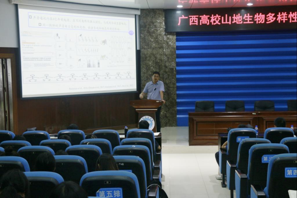 在学术报告环节,白坤栋教授做题为“植物生物地球化学生态位保守性研究进展”的主题报告;黄中豪教授做题为“石山灵长类的肠道菌群与生态适应”的主题报告;范鹏来副教授做题为“白头叶猴声音通讯:多样性、适应和功能”的主题报告;蒋骄云副教授做题为“Cd对中华圆田螺的毒性效应初步研究”的主题报告。(作者/陈剑虹 农俞乐 钟慧琪 黎琦)