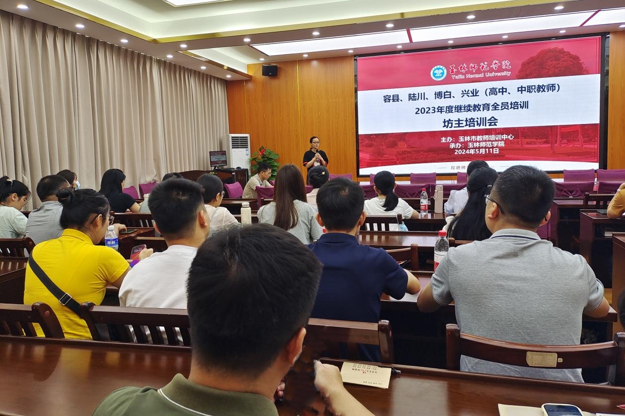 5月11-19日,我校开展容县、陆川、博白、兴业(高中、中职)教师2023年度继续教育全员培训,容县、陆川、博白、兴业4个地区的高中、中职的班主任、学科教师参加此次培训,此次培训开设52个班,参培学员达4768人。