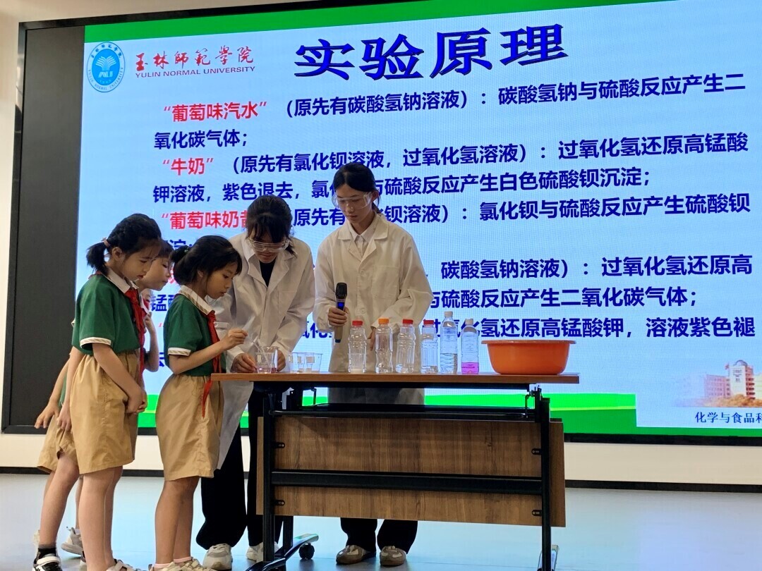 为进一步传播科学思想,激发青少年崇尚科学、探索未知的兴趣,教育和引领青年学生勇于实践,服务地方发展,5月24日,化学与食品科学学院“化学堂”科普志愿服务团队到玉林市科技馆、玉东新区科贝幼儿园等开展“探索化学世界,点燃科学梦想”为主题的科普活动,并开展科普舞台剧《西游记之化学奇遇》首秀。