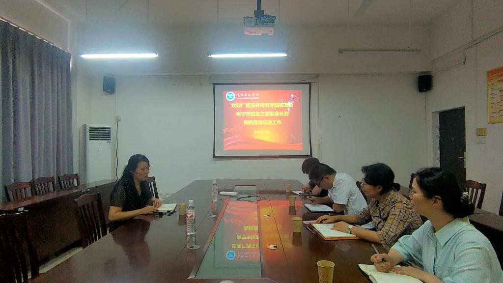5月24日,我校校友会南宁市校友之家副会长覃容到外国语学院指导工作,并在厚德楼1-306会议室进行会议,该院领导班子参加。