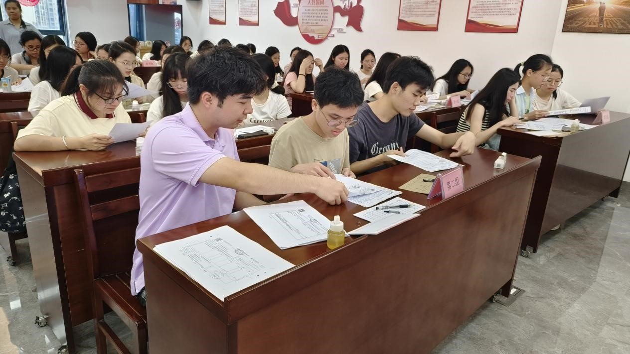 现场学生分为14个小组进行实务操作。面对学生在实操过程中遇到的难题,如“如何准确填制记账凭证、如何有效读取材料信息、如何规范制作账簿”等,教师们提供即时的指导与解答。现场学生认真聆听,积极参与互动。通过亲身实践,学生们深刻体会到实际工作中的操作流程与课堂理论知识之间的差异,这不仅增强学生的实操技能,也加深学生对社会生产实践的理解和认识。