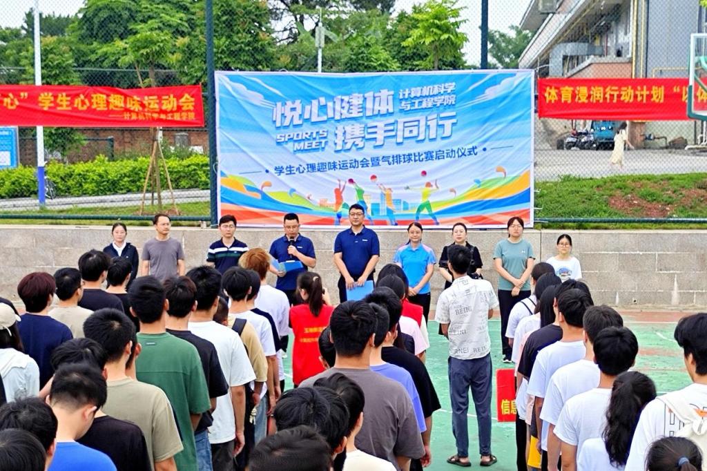 5月25日,计算机科学与工程学院于我校东校区挂榜篮球场举行“悦心健体,携手同行”心理趣味运动会暨气排球比赛启动仪式。该院党委书记方琨,学生工作部(处)副部(处)长文丽,心理健康教育与咨询中心主任吕学巧,该院党委副书记莫文锋,团委书记、辅导员、全体在校生参加此次活动。