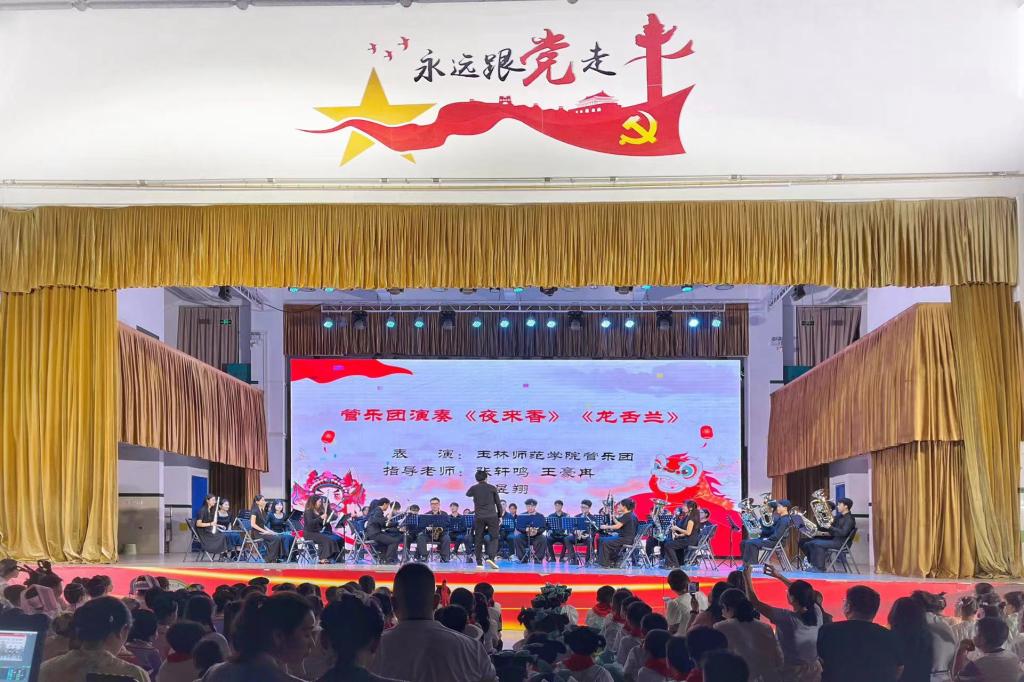 5月28日晚,音乐舞蹈学院赴玉林市玉东新区玉东小学开展校外美育浸润行动。本次活动由党委副书记包璐璐带队,该院管乐团全体师生参与活动。