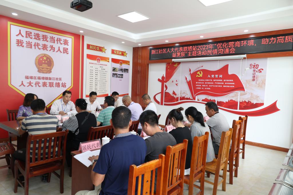 在座谈会上,李伟中听取了福绵镇新江社区人大联络站2022年主题活动代表建议办理情况汇报、福绵镇开展“优化营商环境,助力高质量发展”工作情况汇报,并与驻站代表和基层群众围绕“优化营商环境,助力高质量发展”主题活动提出意见建议,征求《广西壮族自治区生态文明建设促进条例(草案)》的修改意见和建议。