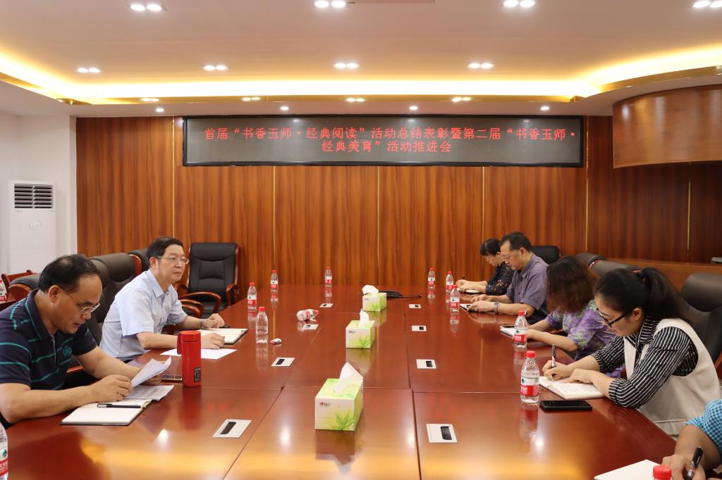 会上,图书馆负责人对首届“书香玉师,经典阅读”活动进行总结,并分享了多个子活动所取得的成效。各相关单位汇报交流第二届“书香玉师,经典美育”活动的开展情况及下一步的推进计划。