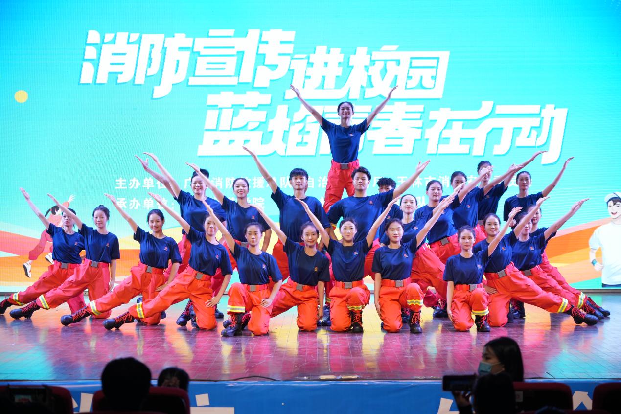 “蓝焰青春在行动”主题宣讲活动以歌舞、乐队表演、功夫操、机甲表演、健美操景剧、演唱、武术、歌伴舞等多种形式向师生群众科普消防知识。玉林消防、北流消防、陆川县消防救援大队,完美在线登录官网“蓝焰青春”消防志愿服务队、完美在线登录官网志愿消防队、消防科普文艺小分队以及玉林无人机协会等单位(团队)纷纷施展才艺,让观众在精彩节目中沉浸式学习消防技能、提升安全意识。在场领导还为我校相关团队授牌、授旗。