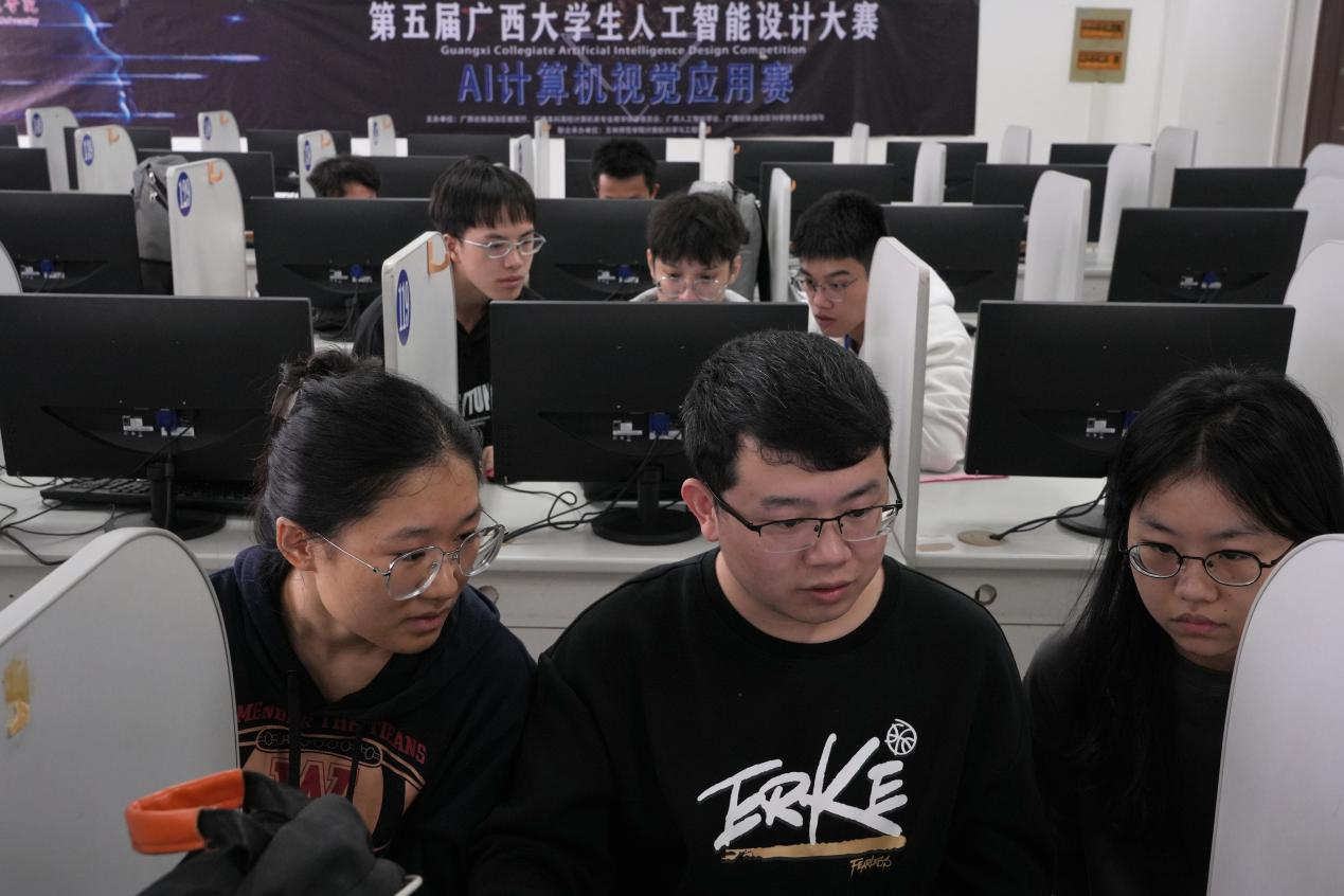 据悉,本次广西大学生人工智能设计大赛AI计算机视觉应用赛由广西壮族自治区教育厅、广西本科高校计算机类专业教学指导委员会、广西人工智能学会、广西壮族自治区科学技术协会指导主办,我校计算机科学与工程学院承办,湖南智擎科技有限公司协办。共有全区15所兄弟院校的63支队伍参加比赛。