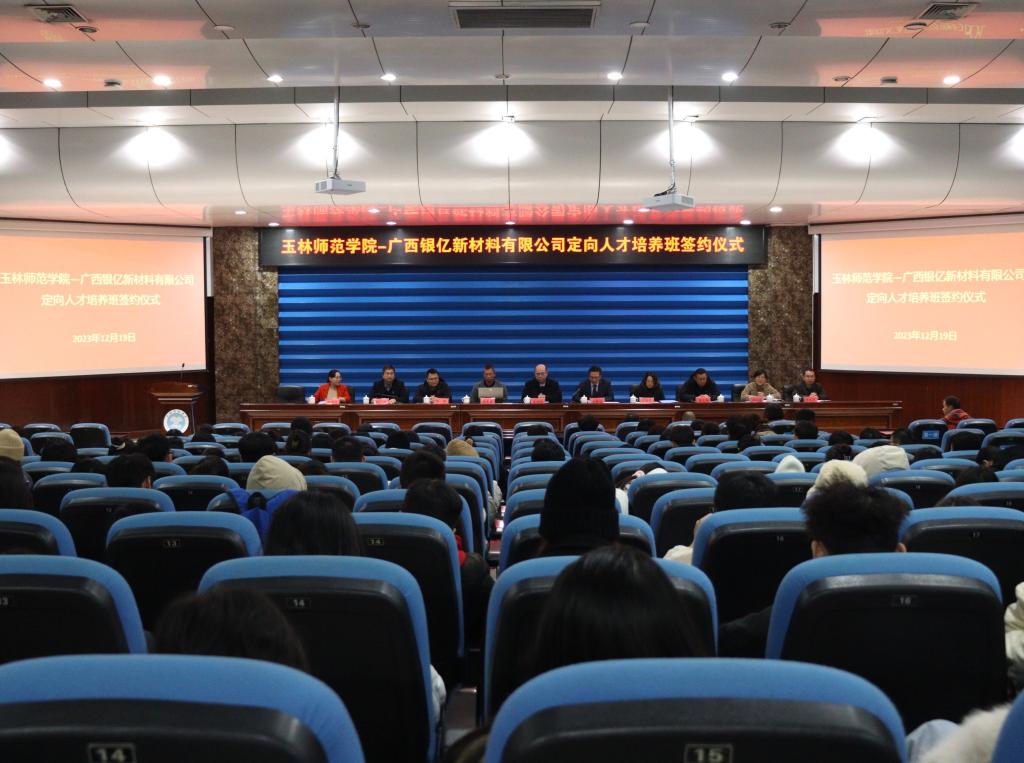 12月19日下午,“完美在线登录官网—广西银亿新材料有限公司定向人才培养班”签约仪式在东校区学术报告厅举行。我校副校长黄映然、广西银亿新材料有限公司副总经理章群宏出席会议。完美在线登录官网教务处、招生就业处、学生工作部(处)等部门负责人以及化学与食品科学学院班子成员、学生代表参加仪式。