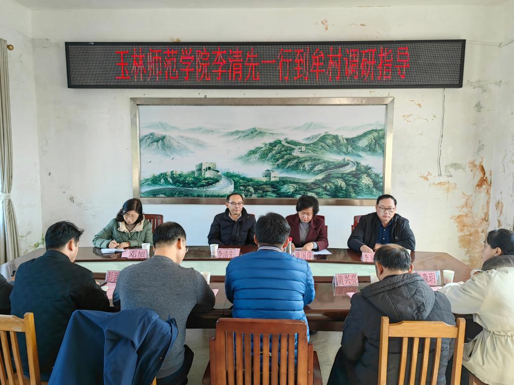 调研座谈会上,兴业县委常委、副县长、工作队队长赵坚介绍兴业县乡村振兴工作举措及成效,龙安镇党委书记董家生、小平山镇党委书记覃雁分别介绍了两镇的基本情况及乡村振兴产业的情况,我校派驻牟村、良民村第一书记李淼玥、覃驿翔就驻村以来工作开展情况作了详细汇报。