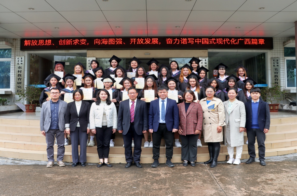 石维有副校长及国际教育学院负责人为留学生颁发结业证书并合影留念。